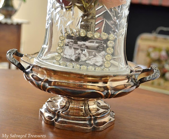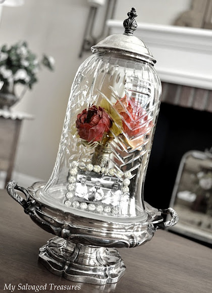 It's the perfect size for an end table. I grabbed the silver tray and bucket of flowers for a quick picture, but wouldn't this be wonderful with glass on top?