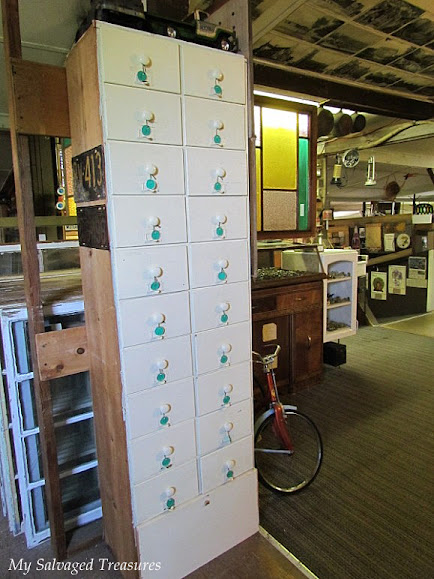 I was tempted on these fabulous rusty drawers, but was talked out of them by my sensible side. I did purchase some of the zinc tags.